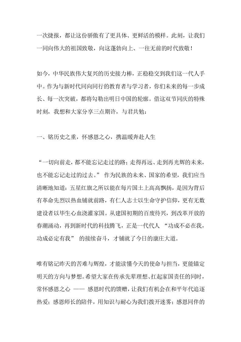 中秋国庆双节,校长致辞:双节同颂山河美,青春逐梦向未来 10-04 管理相关 996 ——预览已结束,还剩3页未读——开通会员后可免费下载高清完整文档 资源下载此资源下载价格为15米,VIP免费,请先登录 资源下载下载价格15 米VIP免费请先登录 0 0