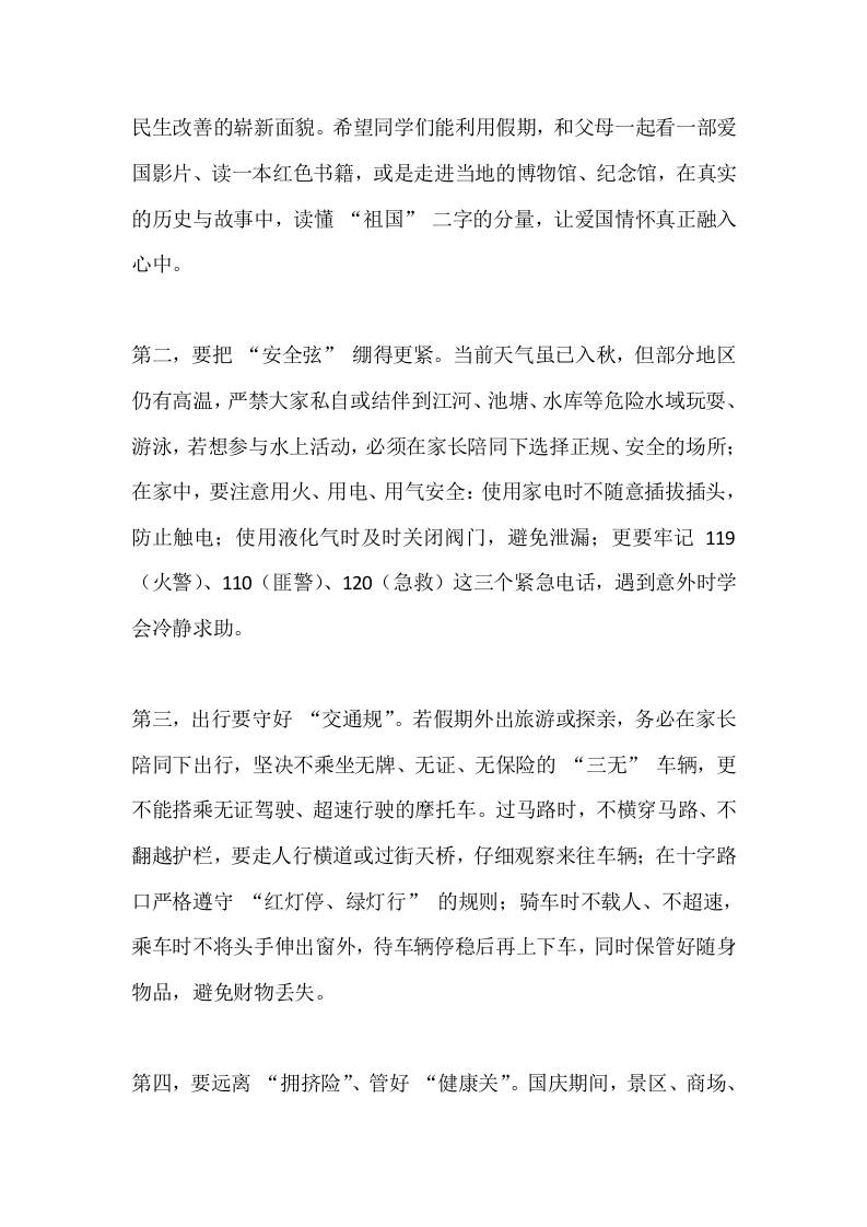 国庆放假前安全教育,校长讲话:迎国庆・筑安全・传薪火 10-04 发言稿 734 ——预览已结束,还剩1页未读——开通会员后可免费下载高清完整文档 资源下载此资源下载价格为15米,VIP免费,请先登录 资源下载下载价格15 米VIP免费请先登录 0 0