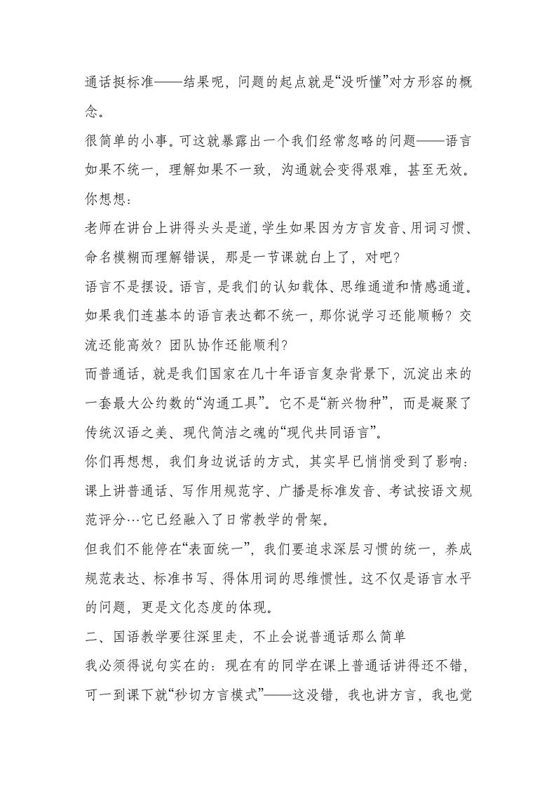 第28届全国推广普通话宣传周,校长在国旗下讲话:普通话连你我,中华情润万家 10-04 国旗下讲话 799 ——预览已结束,还剩5页未读——开通会员后可免费下载高清完整文档 资源下载此资源下载价格为15米,VIP免费,请先登录 资源下载下载价格15 米VIP免费请先登录 0 0