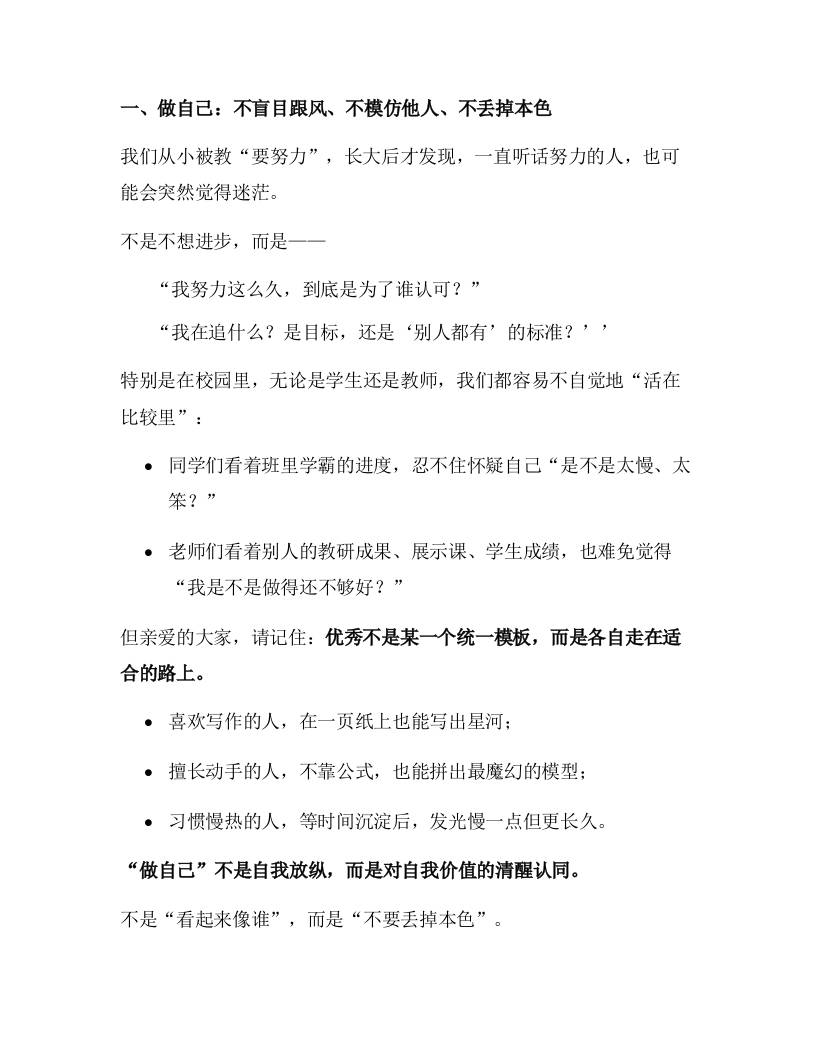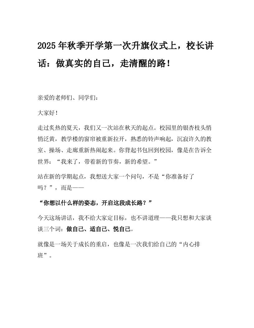 2025年秋季开学第一次升旗仪式上,校长讲话:做真实的自己,走清醒的路! 10-06 发言稿 1.1k ——预览已结束,还剩3页未读——开通会员后可免费下载高清完整文档 资源下载此资源下载价格为15米,VIP免费,请先登录 资源下载下载价格15 米VIP免费请先登录 0 0