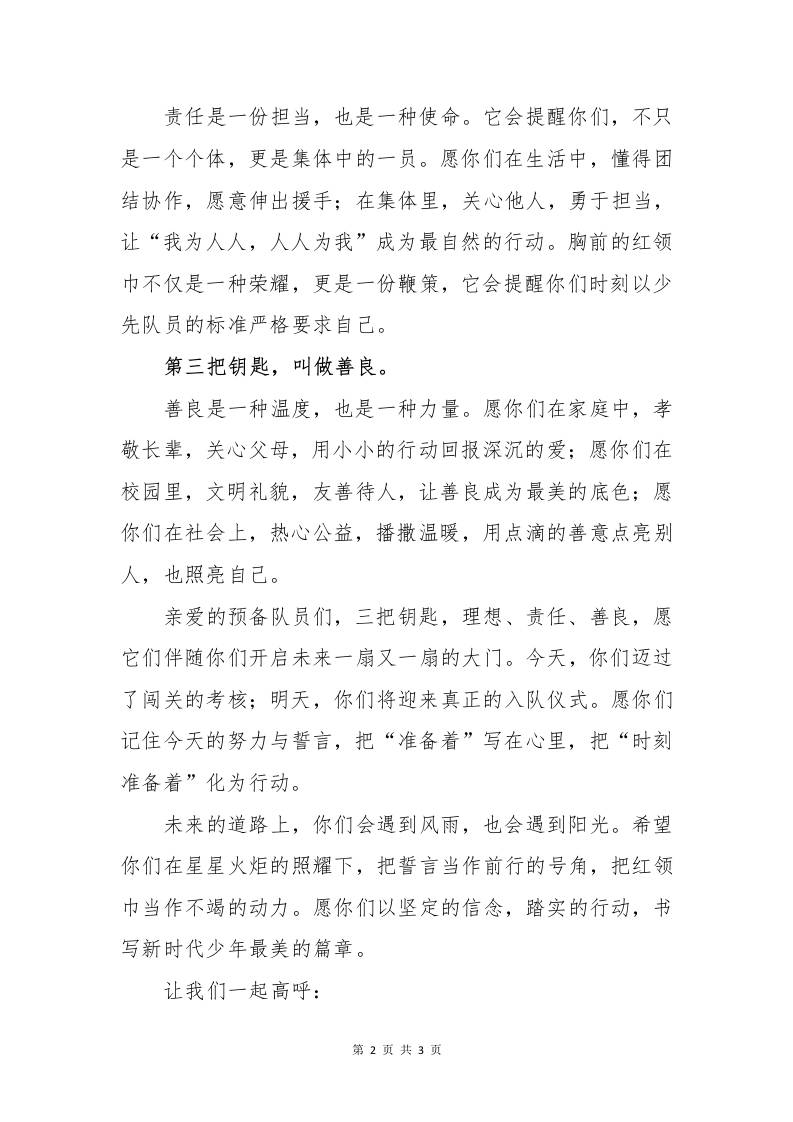入队知识闯关辅导员讲话稿:入队闯关启新程·星星火炬伴我行 10-21 发言稿 1.04k ——预览已结束,还剩1页未读——开通会员后可免费下载高清完整文档 资源下载此资源下载价格为15米,VIP免费,请先登录 资源下载下载价格15 米VIP免费请先登录 0 0