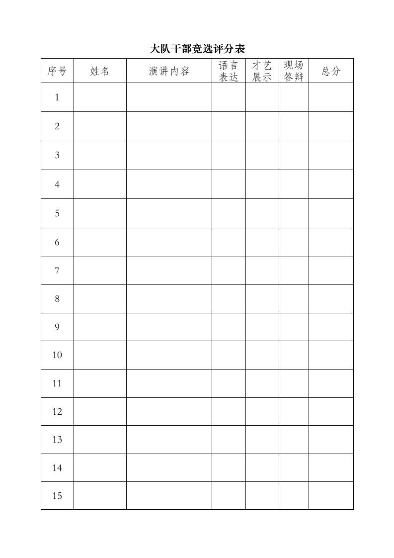 大队干部竞选评分表 10-21 管理相关 918 ——预览已结束,还剩1页未读——开通会员后可免费下载高清完整文档 资源下载此资源下载价格为15米,VIP免费,请先登录 资源下载下载价格15 米VIP免费请先登录 0 0