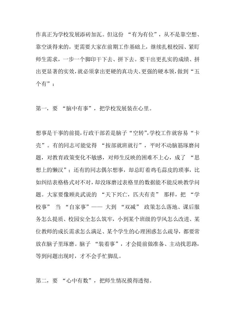 校长在行政班子会上讲话:以“五个有”强担当、促作为,续写开学良好态势 10-26 发言稿 642 ——预览已结束,还剩3页未读——开通会员后可免费下载高清完整文档 资源下载此资源下载价格为15米,VIP免费,请先登录 资源下载下载价格15 米VIP免费请先登录 0 0