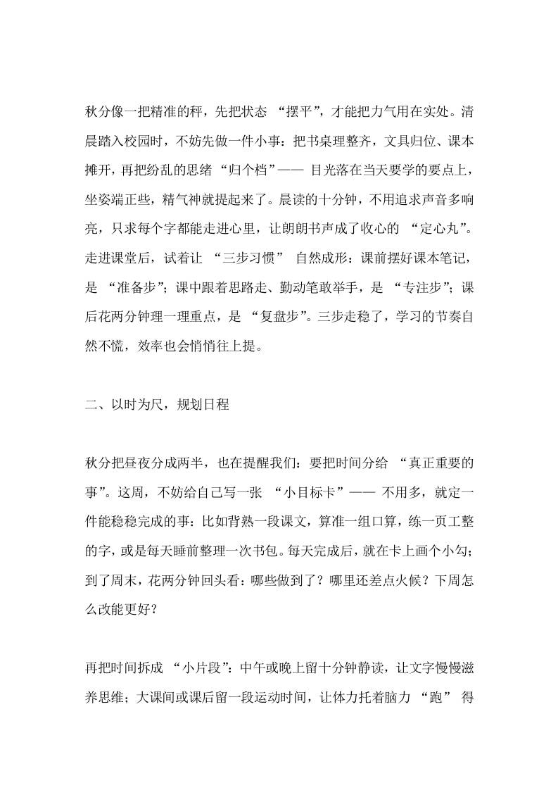 秋分节气,校长在国旗下讲话:秋分启“有度”,学行筑新章 10-28 国旗下讲话 1.49k ——预览已结束,还剩2页未读——开通会员后可免费下载高清完整文档 资源下载此资源下载价格为15米,VIP免费,请先登录 资源下载下载价格15 米VIP免费请先登录 0 0
