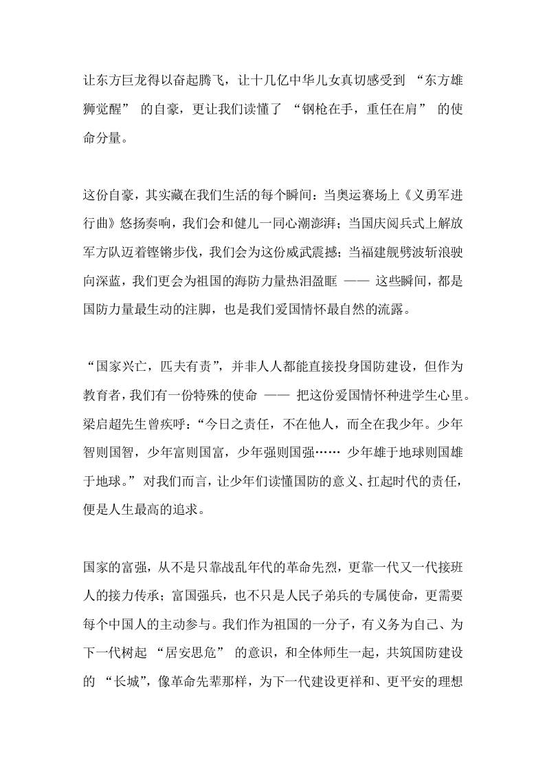 第25个全民国防教育日,校长在国旗下讲话:弘扬抗战精神,共筑国防长城 10-28 国旗下讲话 854 ——预览已结束,还剩2页未读——开通会员后可免费下载高清完整文档 资源下载此资源下载价格为15米,VIP免费,请先登录 资源下载下载价格15 米VIP免费请先登录 0 0