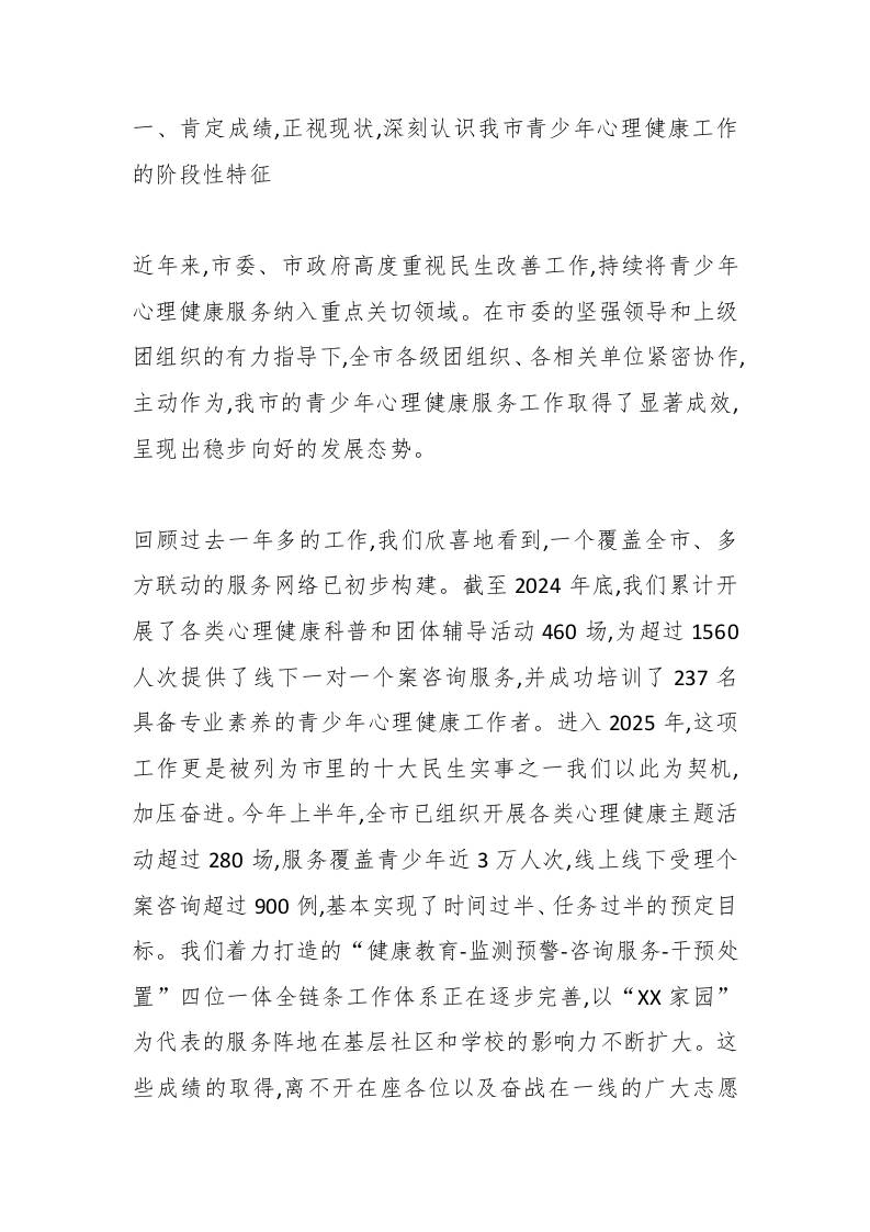 在XX市守护青少年心理健康工作推进会上的讲话(精品)
