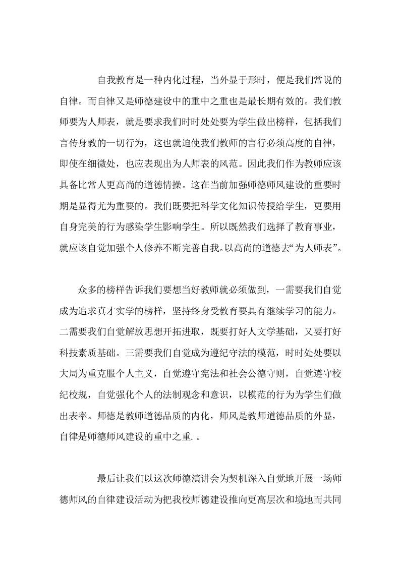 师德演讲会后,校长总结讲话师德是教师道德品质的内化,师风是教师道德品质的外显,自律是师德师风建设的重中之重 11-04 发言稿 590 ——预览已结束,还剩1页未读——开通会员后可免费下载高清完整文档 资源下载此资源下载价格为15米,VIP免费,请先登录 资源下载下载价格15 米VIP免费请先登录 0 0