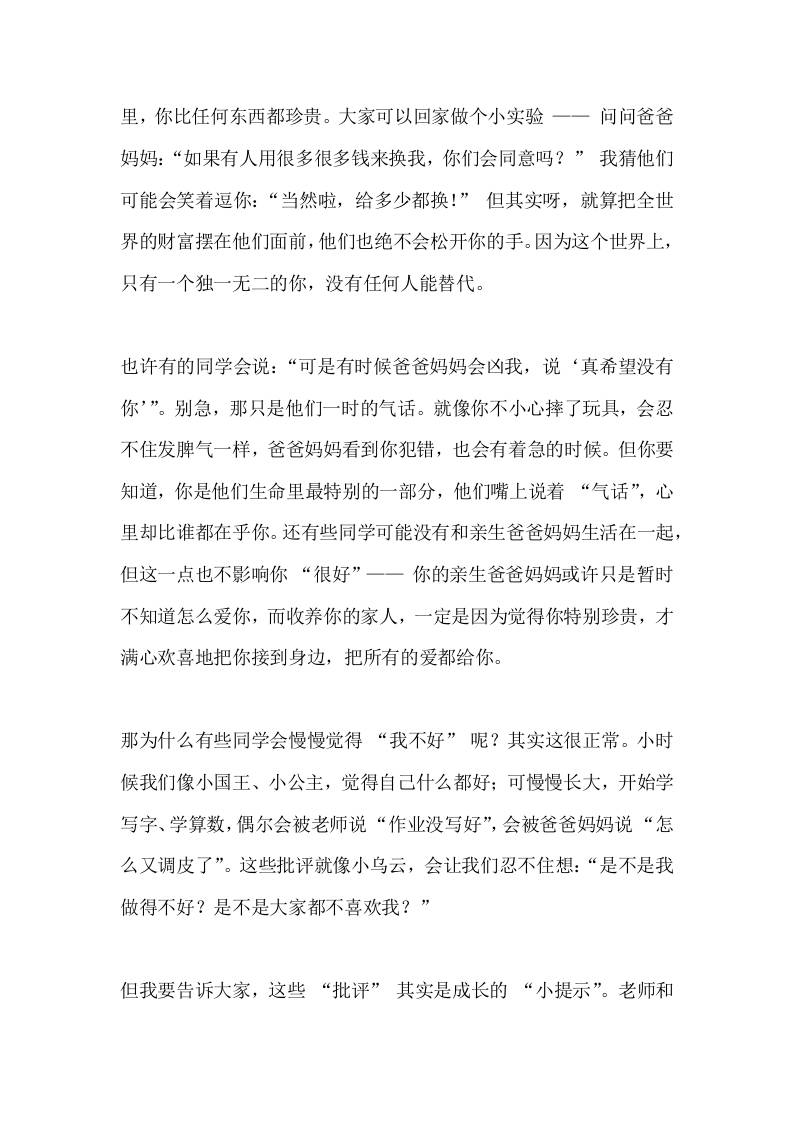 心理健康教育,校长国旗下讲话:我很好,你也很好 11-06 国旗下讲话 608 ——预览已结束,还剩2页未读——开通会员后可免费下载高清完整文档 资源下载此资源下载价格为15米,VIP免费,请先登录 资源下载下载价格15 米VIP免费请先登录 0 0