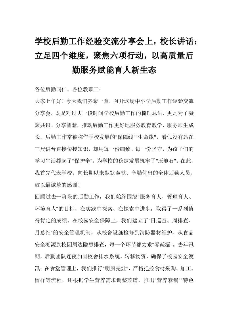 学校后勤工作经验交流分享会上,校长讲话:立足四个维度,聚焦六项行动,以高质量后勤服务赋能育人新生态 11-10 发言稿 918 ——预览已结束,还剩6页未读——开通会员后可免费下载高清完整文档 资源下载此资源下载价格为15米,VIP免费,请先登录 资源下载下载价格15 米VIP免费请先登录 0 0