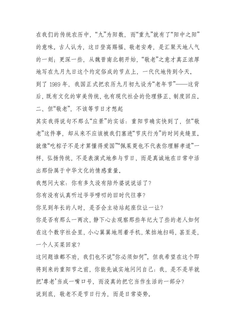 2025重阳节,校长在国旗下讲话:敬老传孝道,重阳寄深情 11-11 国旗下讲话 800 ——预览已结束,还剩3页未读——开通会员后可免费下载高清完整文档 资源下载此资源下载价格为15米,VIP免费,请先登录 资源下载下载价格15 米VIP免费请先登录 0 0
