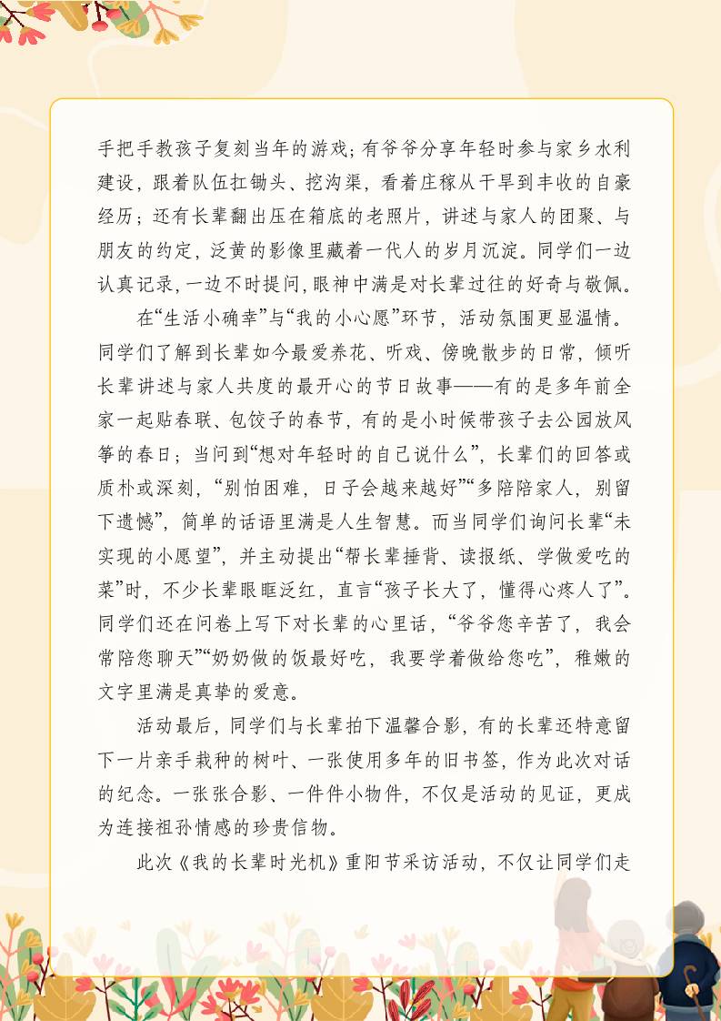 聆听岁月故事,传承温情家风——XX中小学《我的长辈时光机》重阳节采访活动圆满结束(实践活动新闻稿) 11-11 发言稿 1.22k ——预览已结束,还剩1页未读——开通会员后可免费下载高清完整文档 资源下载此资源下载价格为15米,VIP免费,请先登录 资源下载下载价格15 米VIP免费请先登录 0 0