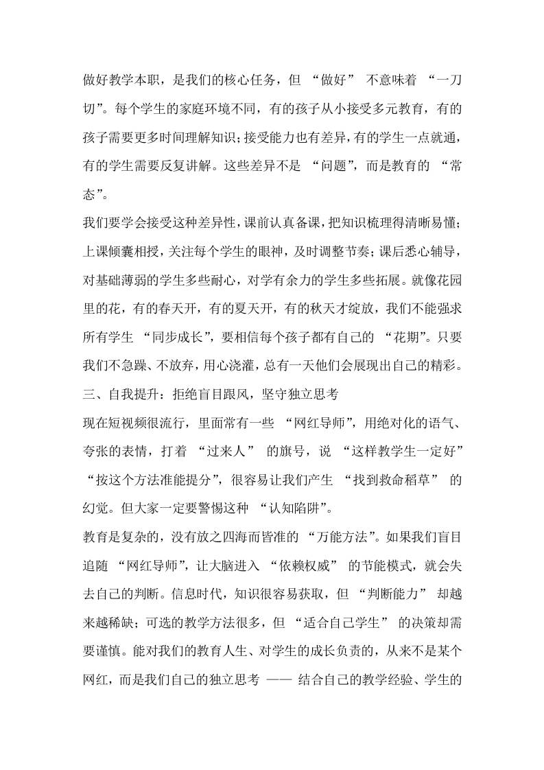 校长在全体教师大会上讲话:以从容之心,从不焦虑开始,赴教育之约 11-15 发言稿 895 ——预览已结束,还剩3页未读——开通会员后可免费下载高清完整文档 资源下载此资源下载价格为15米,VIP免费,请先登录 资源下载下载价格15 米VIP免费请先登录 0 0