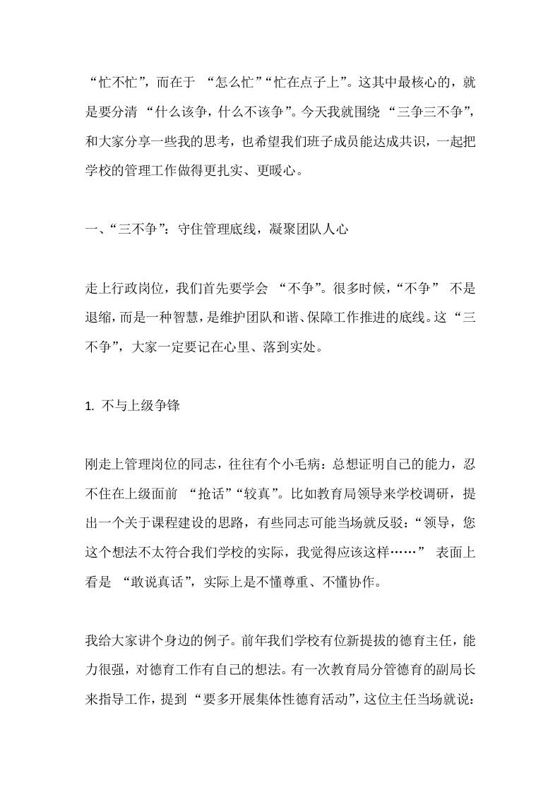 校长在学校行政班子会上讲话:践行‘三争三不争’,凝聚办学合力 11-15 发言稿 717 ——预览已结束,还剩10页未读——开通会员后可免费下载高清完整文档 资源下载此资源下载价格为15米,VIP免费,请先登录 资源下载下载价格15 米VIP免费请先登录 0 0