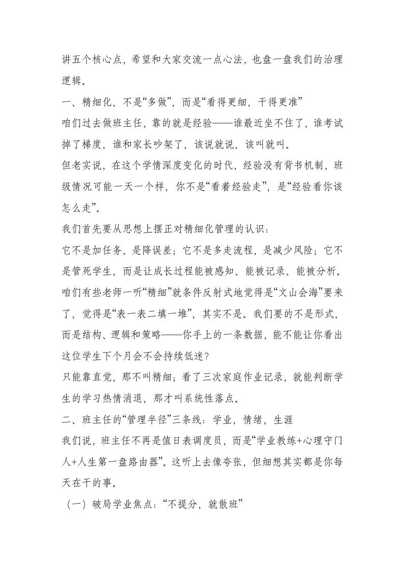 “不只是管纪律,更是在育未来”——校长在高中班主任精细化管理培训会的深度发声 11-23 管理相关 1.47k ——预览已结束,还剩4页未读——开通会员后可免费下载高清完整文档 资源下载此资源下载价格为15米,VIP免费,请先登录 资源下载下载价格15 米VIP免费请先登录 0 0