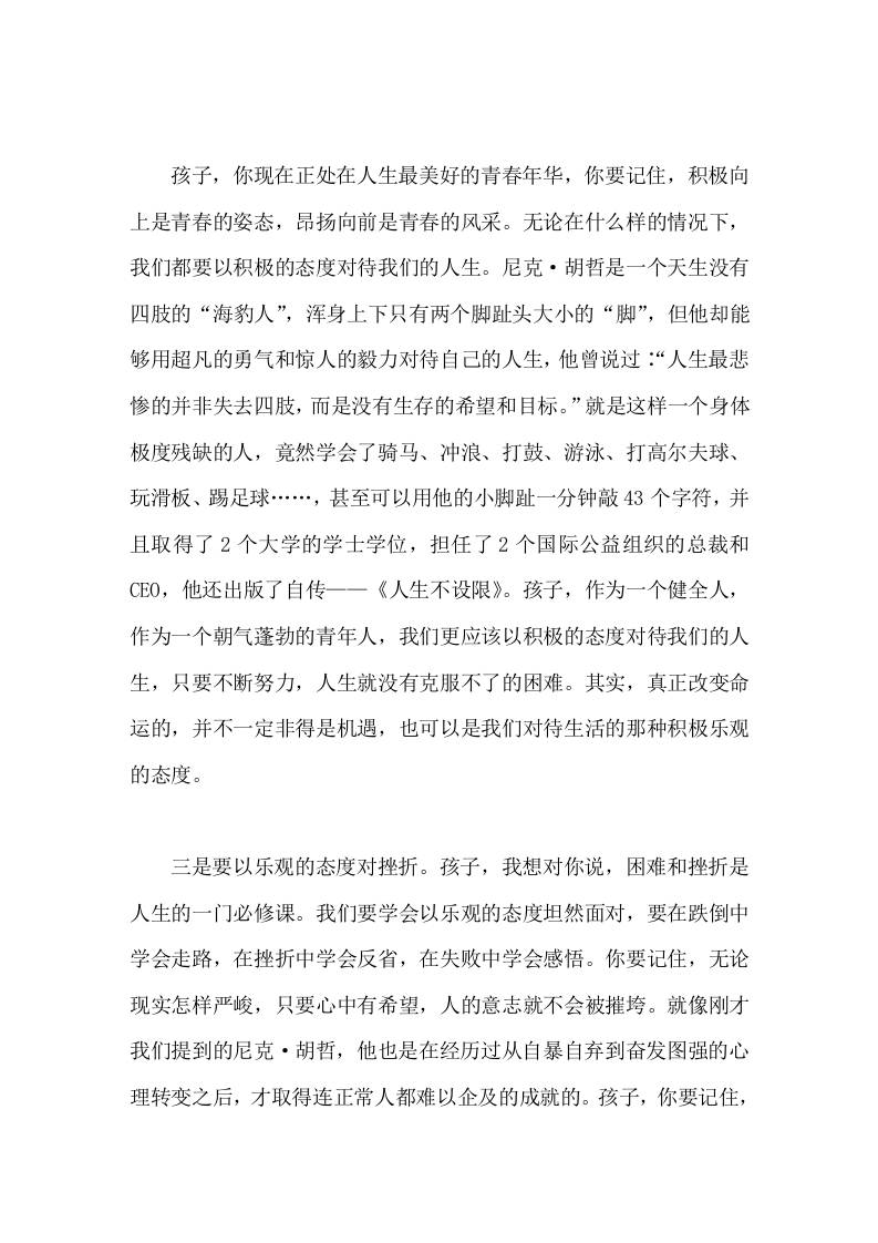 校长在成人礼上讲话人生的道路需要我们自己摸索,人生的甘苦需要我们自己品味 11-24 发言稿 507 ——预览已结束,还剩2页未读——开通会员后可免费下载高清完整文档 资源下载此资源下载价格为15米,VIP免费,请先登录 资源下载下载价格15 米VIP免费请先登录 0 0