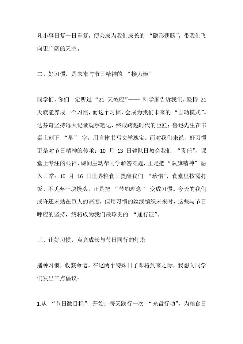 校长在国旗下讲话:好习惯成就好未来 11-26 国旗下讲话 985 ——预览已结束,还剩1页未读——开通会员后可免费下载高清完整文档 资源下载此资源下载价格为15米,VIP免费,请先登录 资源下载下载价格15 米VIP免费请先登录 0 0