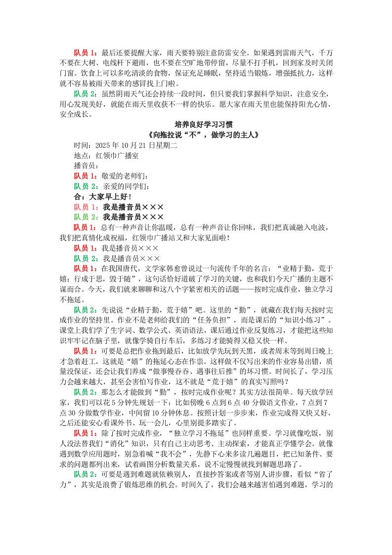 红领巾广播站2025年秋季学期第8周播稿 11-29 发言稿 811 ——预览已结束,还剩5页未读——开通会员后可免费下载高清完整文档 资源下载此资源下载价格为15米,VIP免费,请先登录 资源下载下载价格15 米VIP免费请先登录 0 0