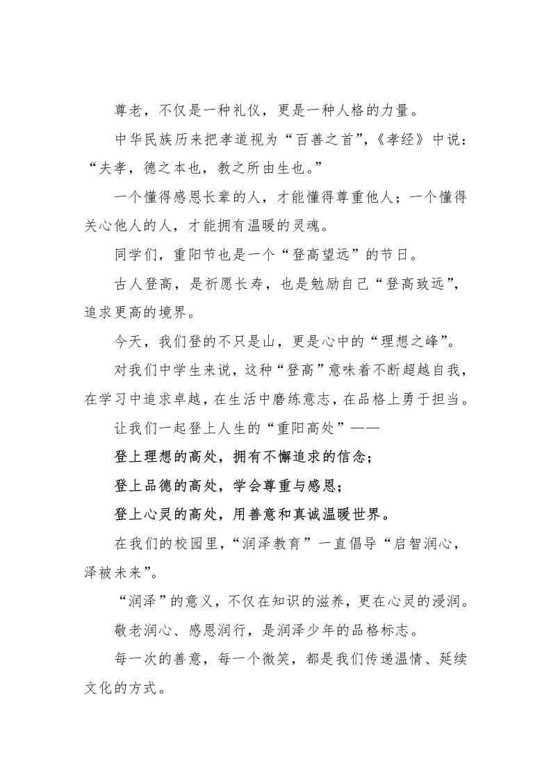 2025年重阳节中学生国旗下讲话稿:登高望远敬重阳·感恩岁月润心田 4周前 国旗下讲话 808 ——预览已结束,还剩1页未读——开通会员后可免费下载高清完整文档 资源下载此资源下载价格为15米,VIP免费,请先登录 资源下载下载价格15 米VIP免费请先登录 0 0