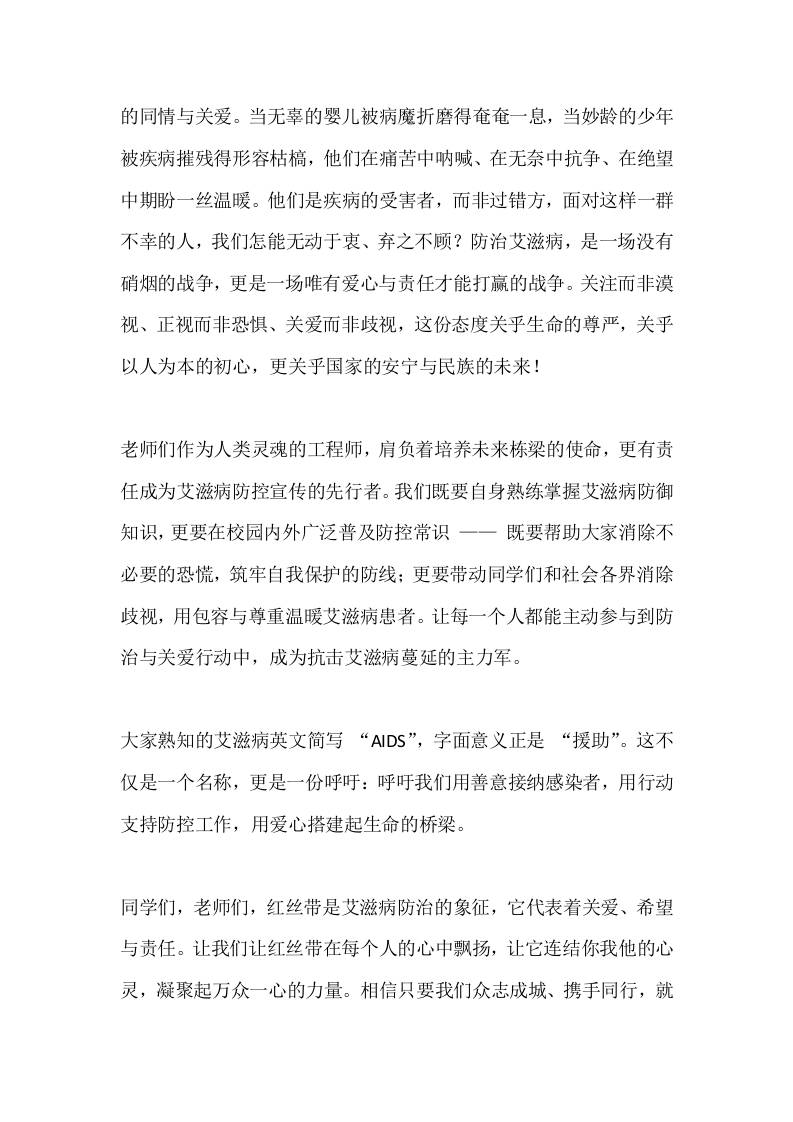 12.1世界艾滋病日,校长在国旗下讲话:让红丝带飘扬,用爱心守护生命晴空 4周前 国旗下讲话 1.08k ——预览已结束,还剩1页未读——开通会员后可免费下载高清完整文档 资源下载此资源下载价格为15米,VIP免费,请先登录 资源下载下载价格15 米VIP免费请先登录 0 0
