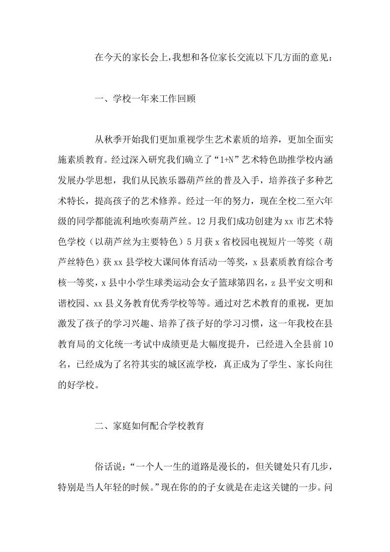 小学家长会上,校长讲话,主要讲了8个观点,再向家长提了5个要求 3周前 家长会(通用) 1.3k ——预览已结束,还剩7页未读——开通会员后可免费下载高清完整文档 资源下载此资源下载价格为15米,VIP免费,请先登录 资源下载下载价格15 米VIP免费请先登录 0 0