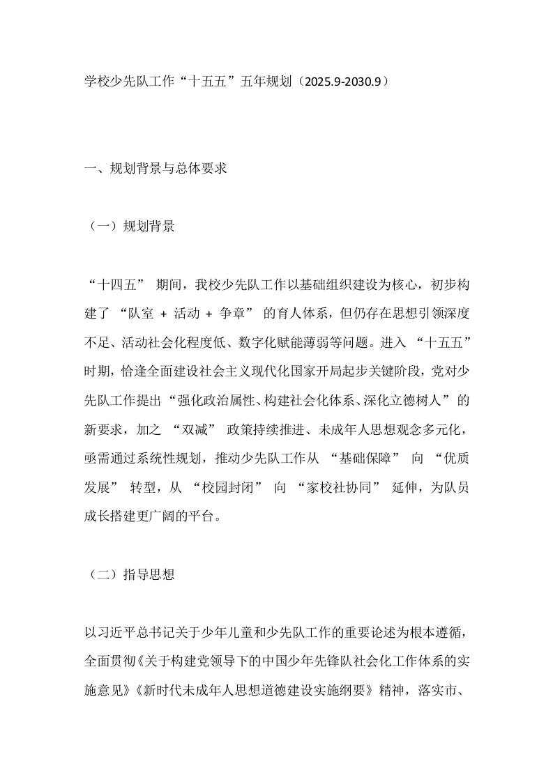 学校少先队工作“十五五”五年规划(2025.9-2030.9) 3周前 管理相关 1.29k ——预览已结束,还剩13页未读——开通会员后可免费下载高清完整文档 资源下载此资源下载价格为15米,VIP免费,请先登录 资源下载下载价格15 米VIP免费请先登录 0 0