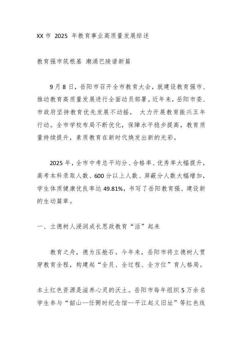 XX市2025年教育事业高质量发展综述 2周前 管理相关 783 ——预览已结束,还剩5页未读——开通会员后可免费下载高清完整文档 资源下载此资源下载价格为15米,VIP免费,请先登录 资源下载下载价格15 米VIP免费请先登录 0 0