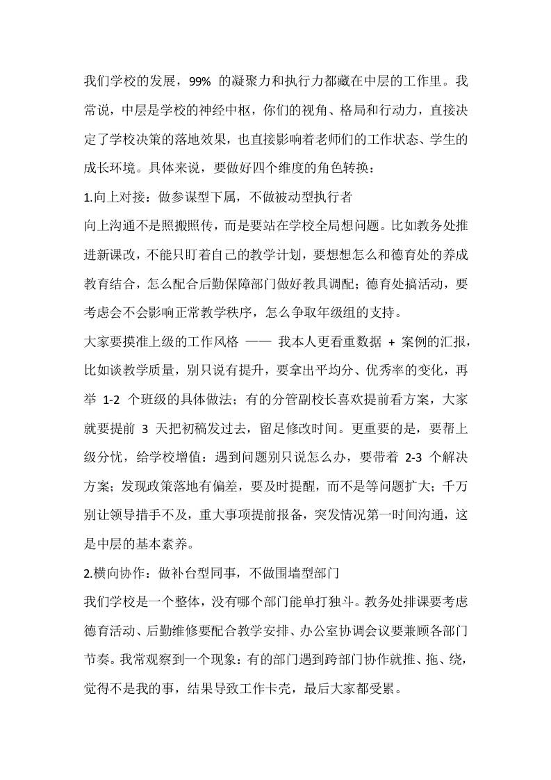 学校中层培训会,校长讲话:从#039;夹心#039;到#039;核心#039;,做学校发展的中坚力量 2周前 发言稿 767 ——预览已结束,还剩9页未读——开通会员后可免费下载高清完整文档 资源下载此资源下载价格为15米,VIP免费,请先登录 资源下载下载价格15 米VIP免费请先登录 0 0