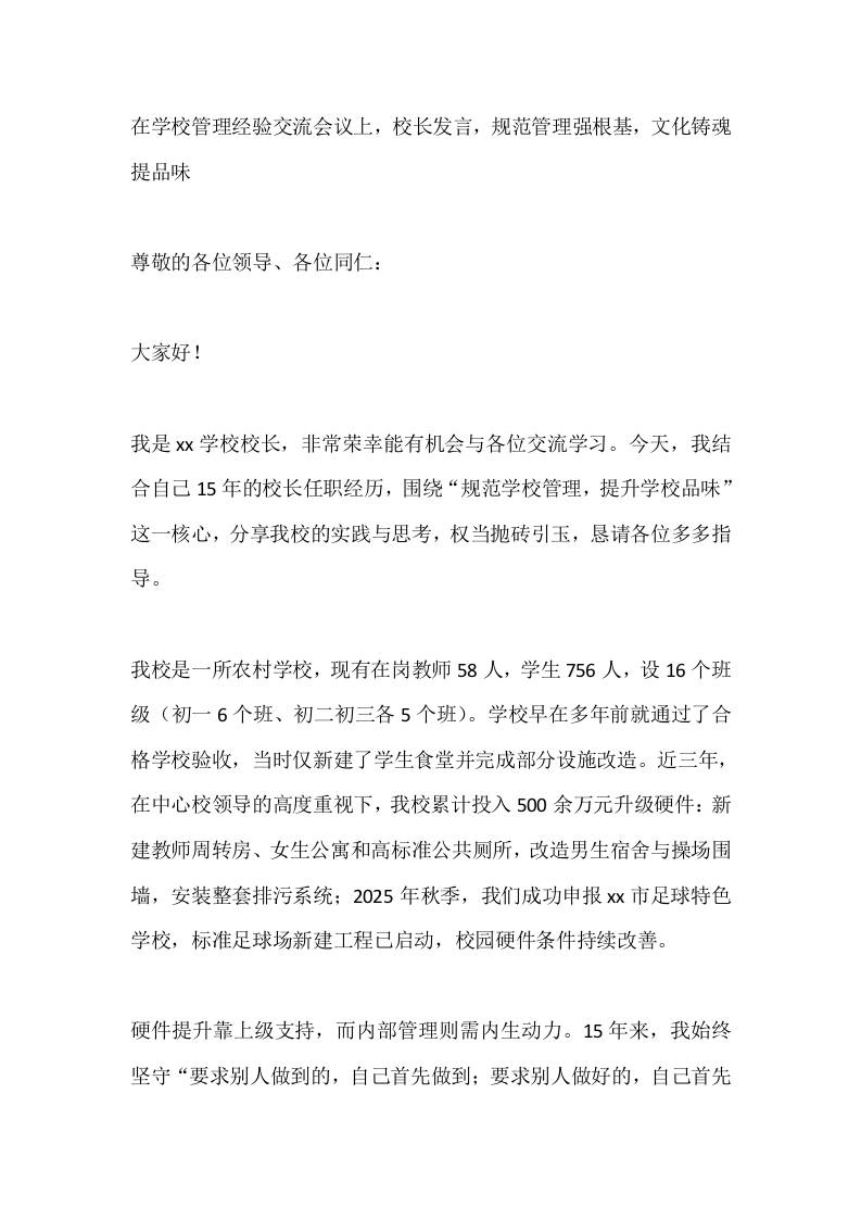 在学校管理经验交流会议上,校长发言,规范管理强根基,文化铸魂提品味