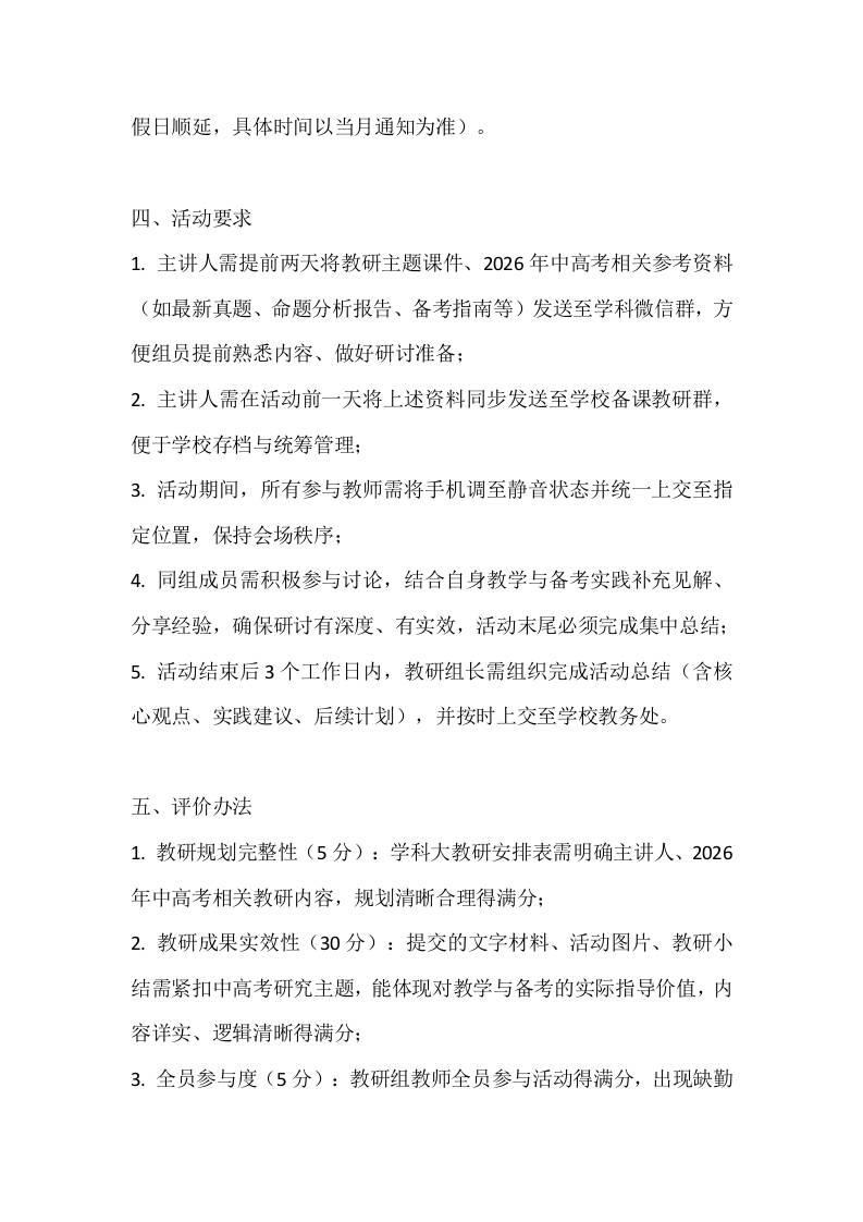 2026年学科大教研活动方案:以中高考研究为主线,赋能教学提质 1周前 管理相关 536 ——预览已结束,还剩1页未读——开通会员后可免费下载高清完整文档 资源下载此资源下载价格为15米,VIP免费,请先登录 资源下载下载价格15 米VIP免费请先登录 0 0