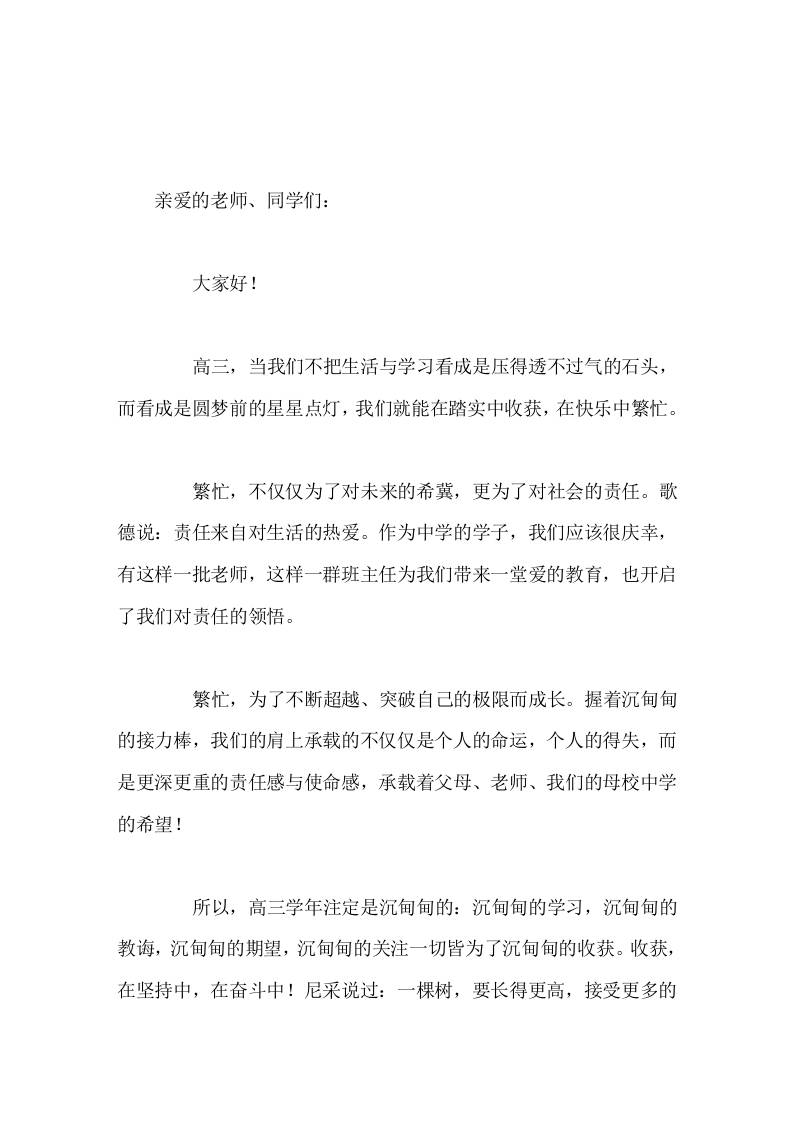 校长在高三励志大会上讲话让我们用汗水去播种希望,用青春去诠释无悔;让青春在永不停息的奋斗中闪耀 6天前 发言稿 681 ——预览已结束,还剩1页未读——开通会员后可免费下载高清完整文档 资源下载此资源下载价格为15米,VIP免费,请先登录 资源下载下载价格15 米VIP免费请先登录 0 0