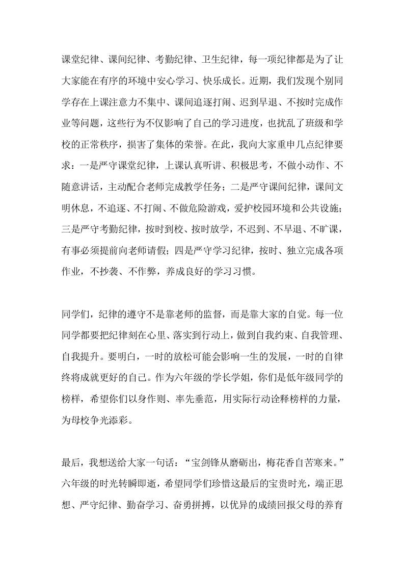 六年级思想纪律整顿会,校长发言:宝剑锋从磨砺出,梅花香自苦寒来 2天前 发言稿 902 ——预览已结束,还剩1页未读——开通会员后可免费下载高清完整文档 资源下载此资源下载价格为15米,VIP免费,请先登录 资源下载下载价格15 米VIP免费请先登录 0 0