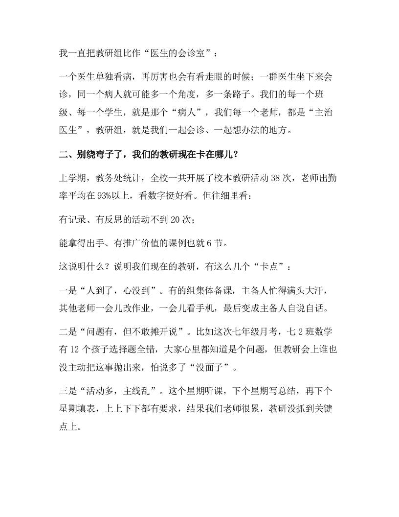 校长在教师会议上发言:从“例行开会”到“一起长本事”——让教研组真正活起来! 10小时前 发言稿 1.49k ——预览已结束,还剩4页未读——开通会员后可免费下载高清完整文档 资源下载此资源下载价格为15米,VIP免费,请先登录 资源下载下载价格15 米VIP免费请先登录 0 0