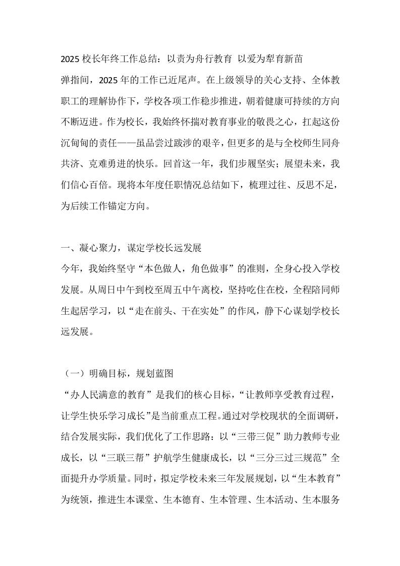 2025校长年终工作总结:以责为舟行教育,以爱为犁育新苗