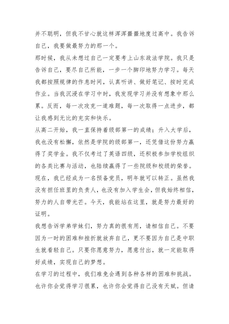 优秀毕业生在XX应用技术职业中等专业学校建校20周年庆典上的发言:努力,为中职生开启美好未来
