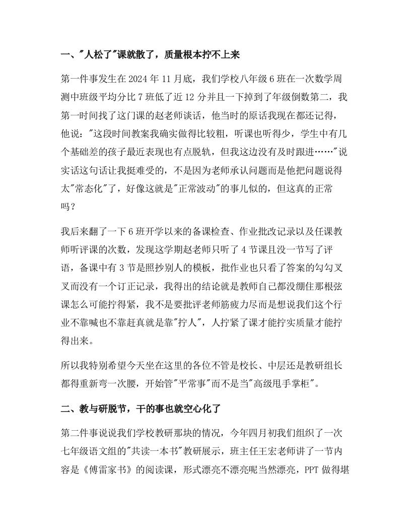全区教学质量提升推进会上,校长讲话:把人拧紧了,把课拧实了,质量才拧得出! 01-17 发言稿 1.34k ——预览已结束,还剩4页未读——开通会员后可免费下载高清完整文档 资源下载此资源下载价格为15米,VIP免费,请先登录 资源下载下载价格15 米VIP免费请先登录 0 0