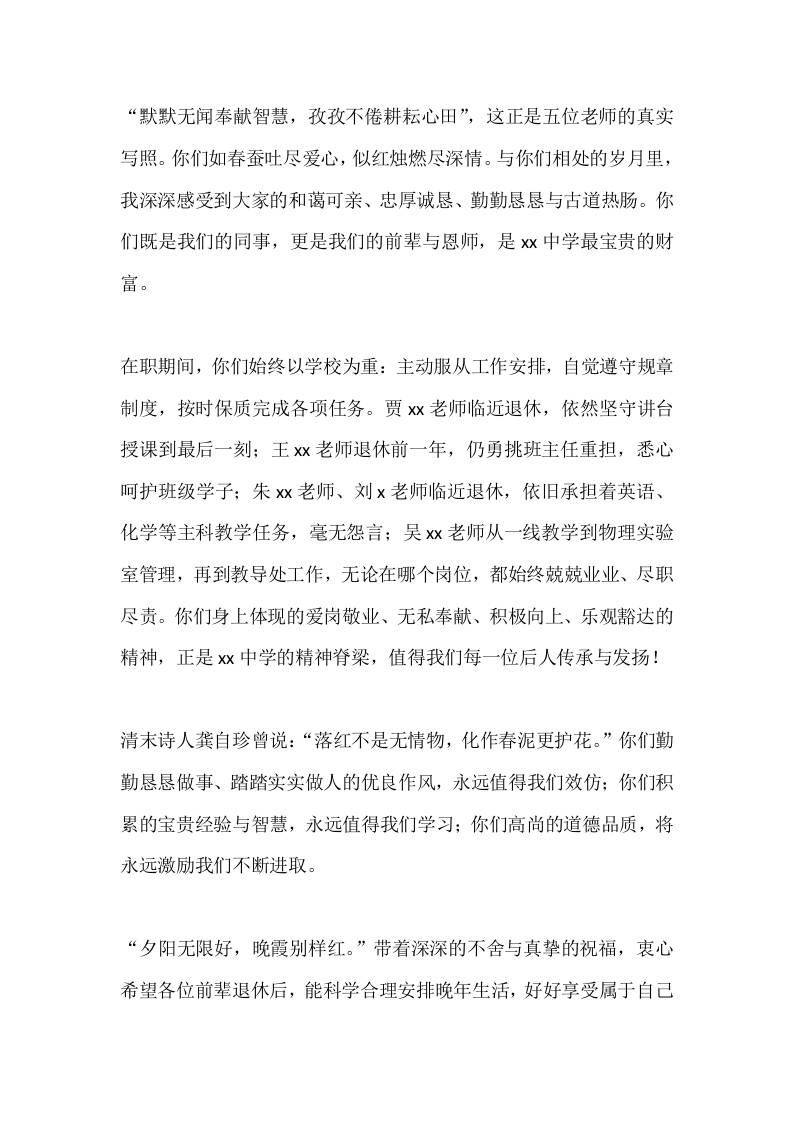教师退休欢送会校长讲话:薪火传情忆初心,桃李芬芳敬韶华 01-21 发言稿 558 ——预览已结束,还剩1页未读——开通会员后可免费下载高清完整文档 资源下载此资源下载价格为15米,VIP免费,请先登录 资源下载下载价格15 米VIP免费请先登录 0 0