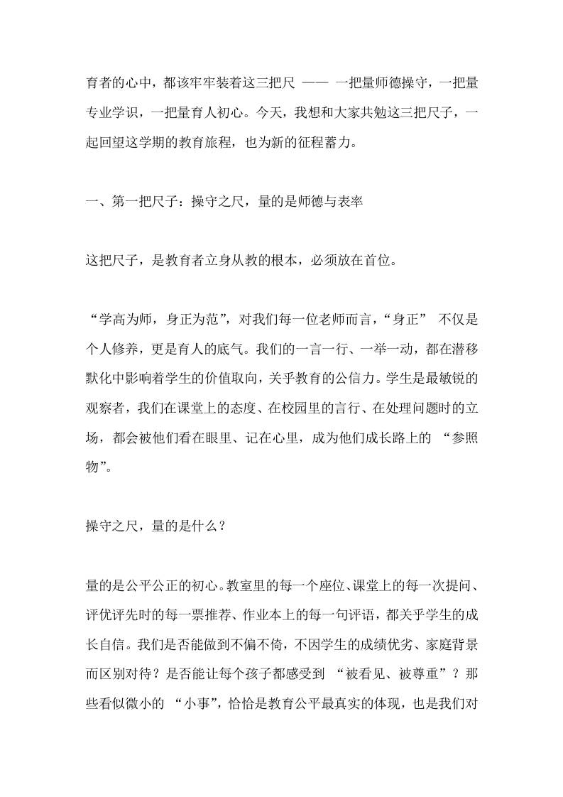 2025秋季学期最后一次全体教师大会上,校长讲话:握好三把尺,守好育人根