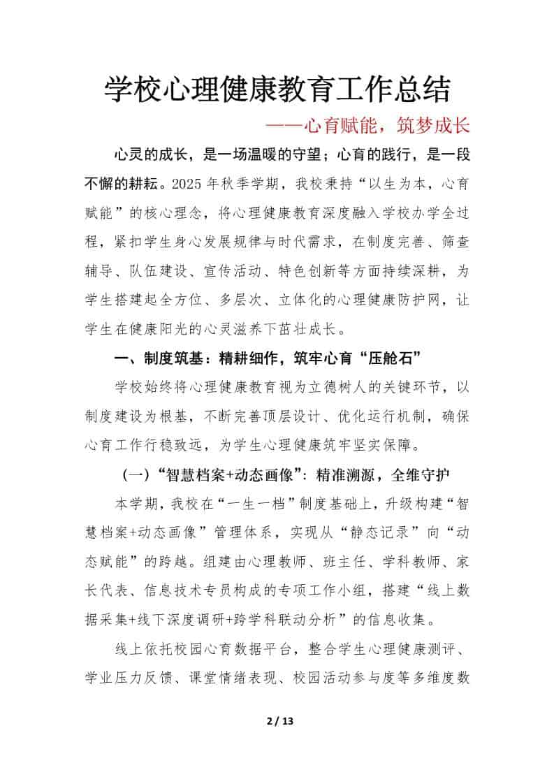 2025年秋季第一学期学校心理健康教育工作总结:心育赋能,筑梦成长 4周前 工作总结 721 ——预览已结束,还剩11页未读——开通会员后可免费下载高清完整文档 资源下载此资源下载价格为15米,VIP免费,请先登录 资源下载下载价格15 米VIP免费请先登录 0 0