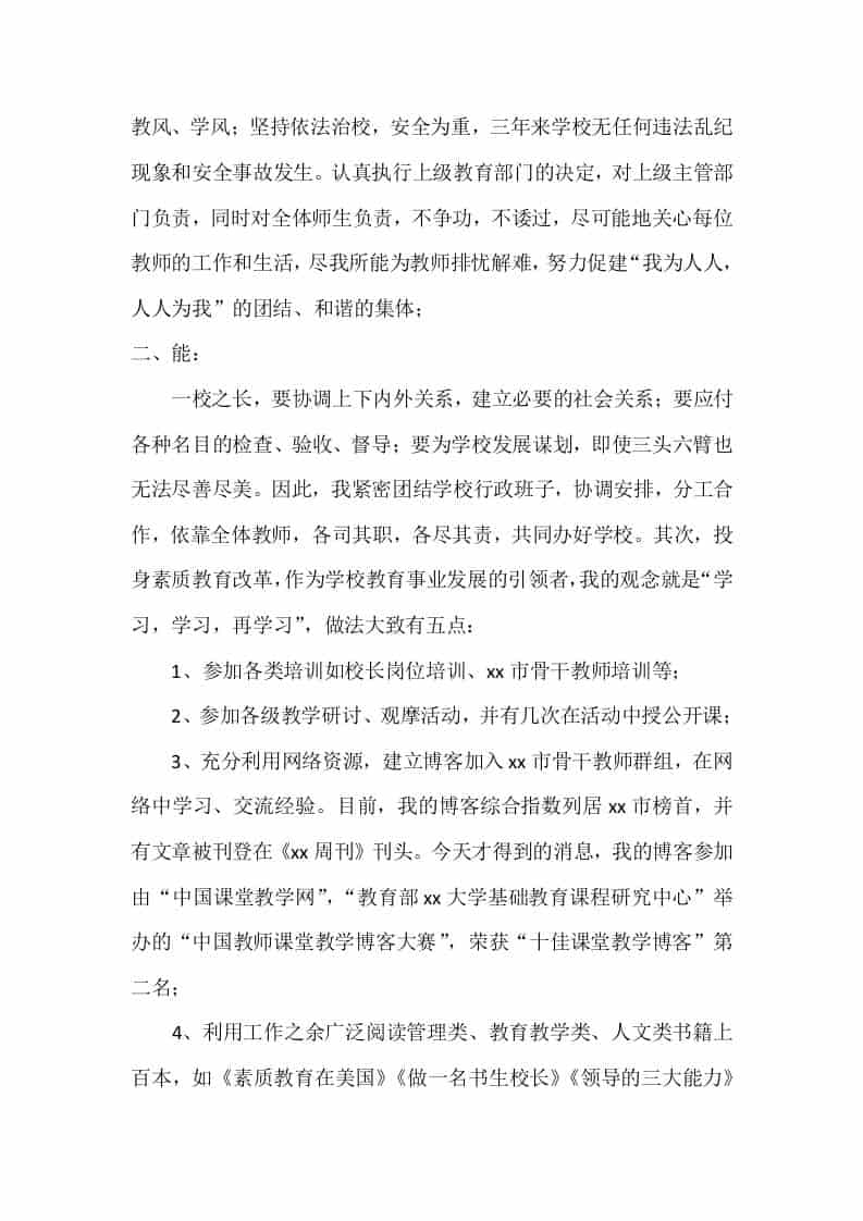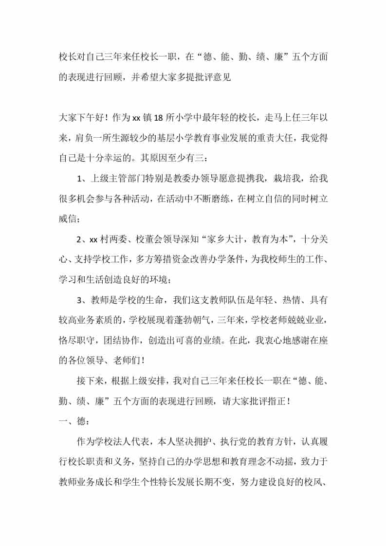 校长对自己三年来任校长一职,在“德、能、勤、绩、廉”五个方面的表现进行回顾,并希望大家多提批评意见 3周前 管理相关 850 ——预览已结束,还剩3页未读——开通会员后可免费下载高清完整文档 资源下载此资源下载价格为15米,VIP免费,请先登录 资源下载下载价格15 米VIP免费请先登录 0 0