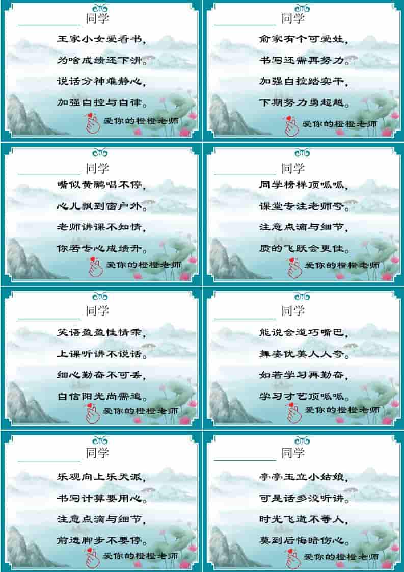 02【打油诗】72则创意期末评语-每页8张 2周前 评语 503 ——预览已结束,还剩7页未读——开通会员后可免费下载高清完整文档 资源下载此资源下载价格为15米,VIP免费,请先登录 资源下载下载价格15 米VIP免费请先登录 0 0