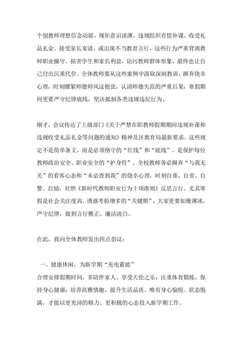 寒假师德师风警示教育会校长讲话:守住底线不越界,清廉过好假期 2周前 发言稿 626 ——预览已结束,还剩3页未读——开通会员后可免费下载高清完整文档 资源下载此资源下载价格为15米,VIP免费,请先登录 资源下载下载价格15 米VIP免费请先登录 0 0