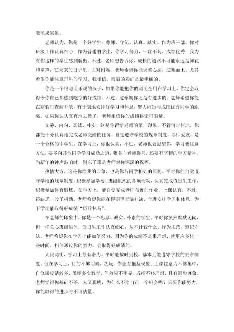 初中生期末优质评语(中学生期末评语) 1周前 评语 865 ——预览已结束,还剩31页未读——开通会员后可免费下载高清完整文档 资源下载此资源下载价格为15米,VIP免费,请先登录 资源下载下载价格15 米VIP免费请先登录 0 0