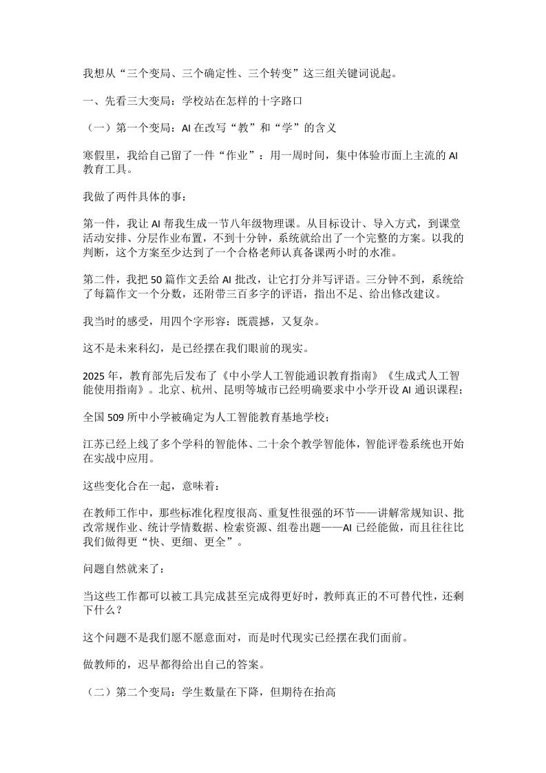 2026春季开学校长讲话稿:大格局!3个变局、3个确定性、3个转变 7天前 发言稿 979 ——预览已结束,还剩8页未读——开通会员后可免费下载高清完整文档 资源下载此资源下载价格为15米,VIP免费,请先登录 资源下载下载价格15 米VIP免费请先登录 0 0