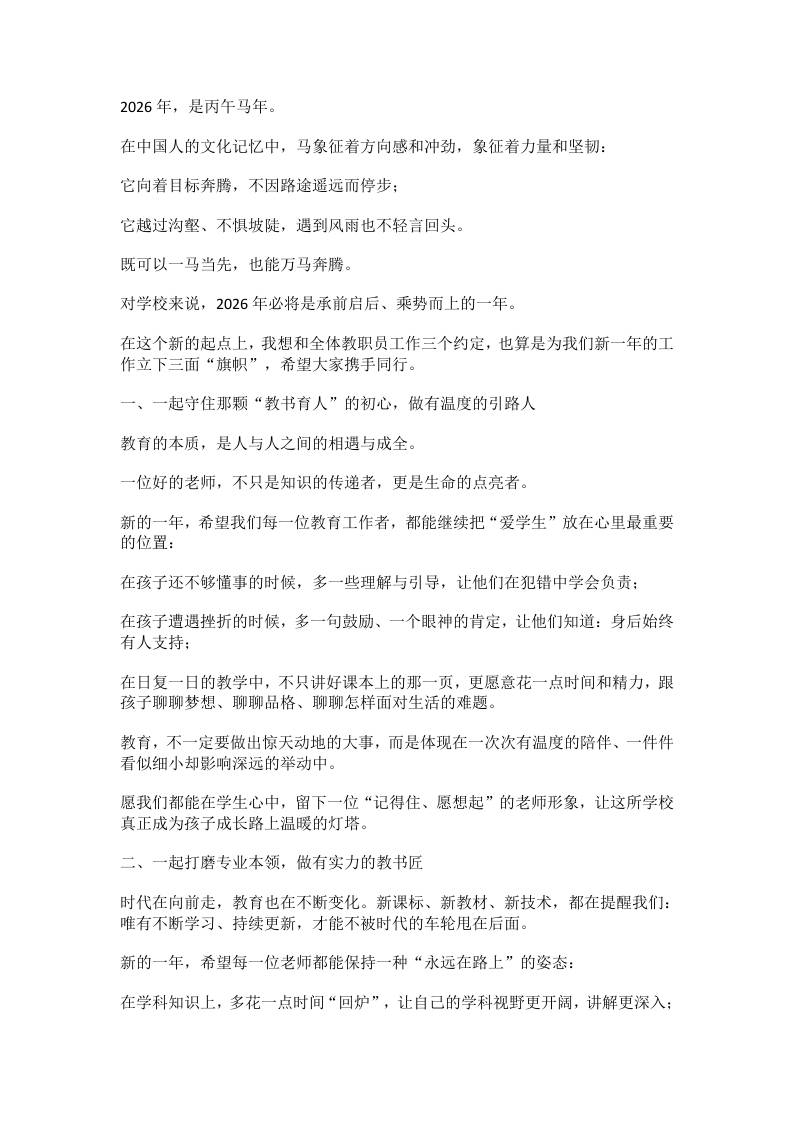 校长马年新春致辞:既能一马当先,亦能万马奔腾! 1天前 管理相关 680 ——预览已结束,还剩2页未读——开通会员后可免费下载高清完整文档 资源下载此资源下载价格为15米,VIP免费,请先登录 资源下载下载价格15 米VIP免费请先登录 0 0