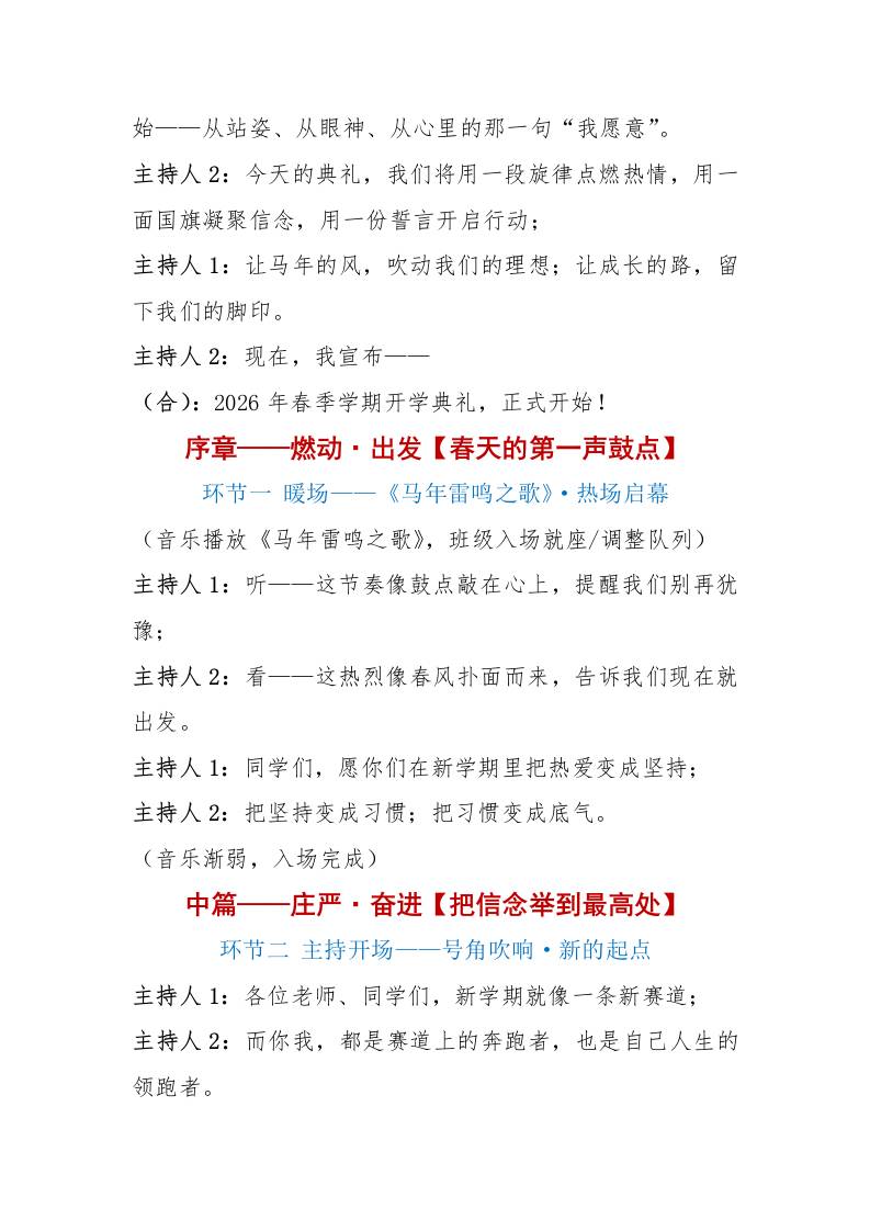 2026年春季开学典礼主持词——春启马年·向新而行·我们的成长开跑 3天前 管理相关 1.15k ——预览已结束,还剩5页未读——开通会员后可免费下载高清完整文档 资源下载此资源下载价格为15米,VIP免费,请先登录 资源下载下载价格15 米VIP免费请先登录 0 0