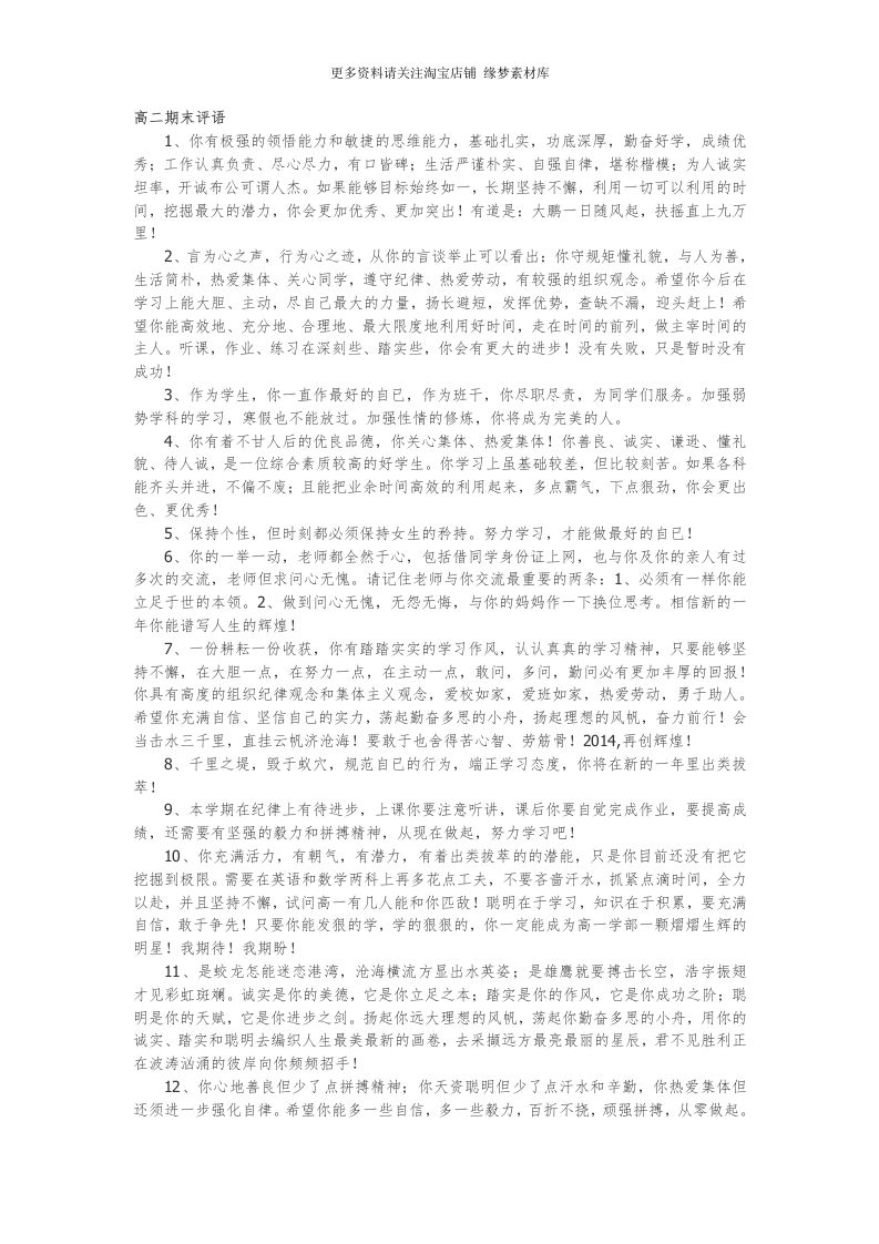 高二期末评语65篇 12-15 评语 13 ——预览已结束,还剩4页未读——开通会员后可免费下载高清完整文档 资源下载此资源下载价格为15米,VIP免费,请先登录 资源下载下载价格15 米VIP免费请先登录 0 0