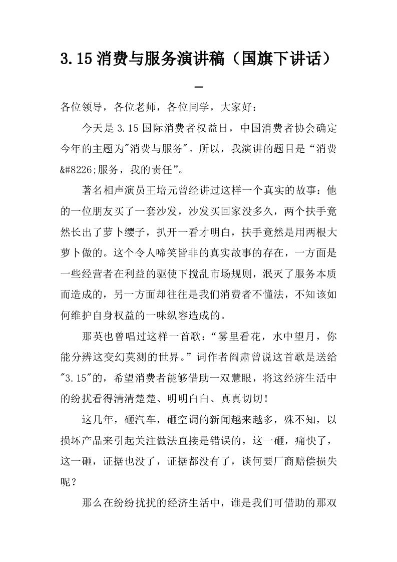3.15消费与服务演讲稿(国旗下讲话)_[推荐] 12-16 国旗下讲话 11 ——预览已结束,还剩2页未读——开通会员后可免费下载高清完整文档 资源下载此资源下载价格为15米,VIP免费,请先登录 资源下载下载价格15 米VIP免费请先登录 0 0