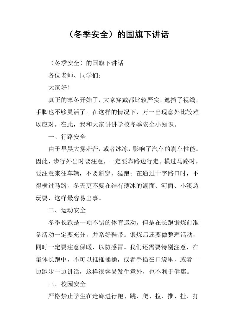 (冬季安全)的国旗下讲话[推荐] 12-16 国旗下讲话 11 ——预览已结束,还剩1页未读——开通会员后可免费下载高清完整文档 资源下载此资源下载价格为15米,VIP免费,请先登录 资源下载下载价格15 米VIP免费请先登录 0 0
