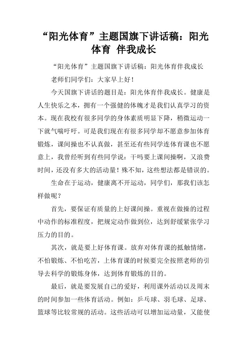 “阳光体育”主题国旗下讲话稿:阳光体育伴我成长[推荐] 12-16 国旗下讲话 11 ——预览已结束,还剩1页未读——开通会员后可免费下载高清完整文档 资源下载此资源下载价格为15米,VIP免费,请先登录 资源下载下载价格15 米VIP免费请先登录 0 0
