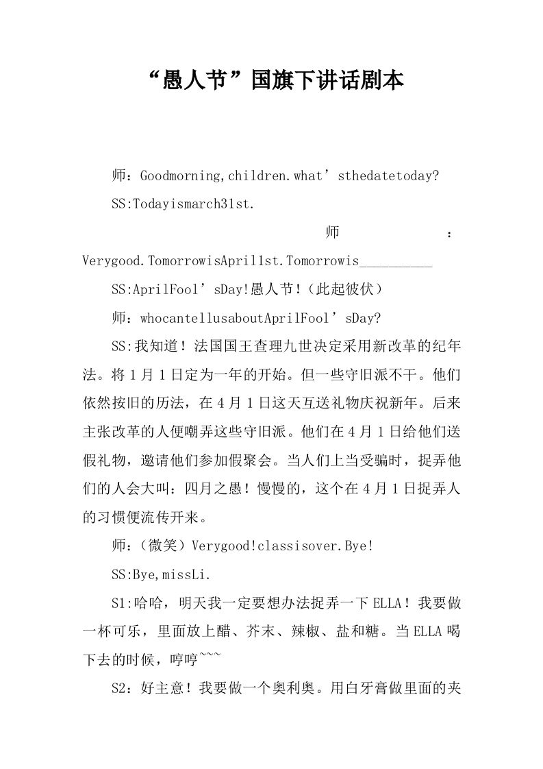 “愚人节”国旗下讲话剧本[推荐] 12-18 国旗下讲话 11 ——预览已结束,还剩3页未读——开通会员后可免费下载高清完整文档 资源下载此资源下载价格为15米,VIP免费,请先登录 资源下载下载价格15 米VIP免费请先登录 0 0